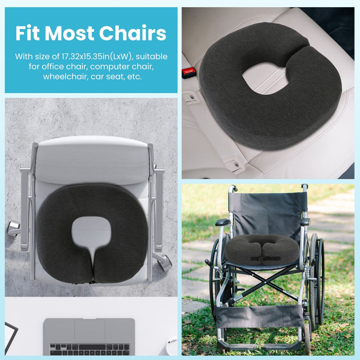- *Pain Relief & Great Gift*: Our reliable donut-design seat cushion filled in space memory foam is designed to help with pain relief and is a great gift for people who have long sitting time and driving time and who suffer from sciatica,herniated discs,tailbone injuries,hip pain,hemorrhoids and numbness.